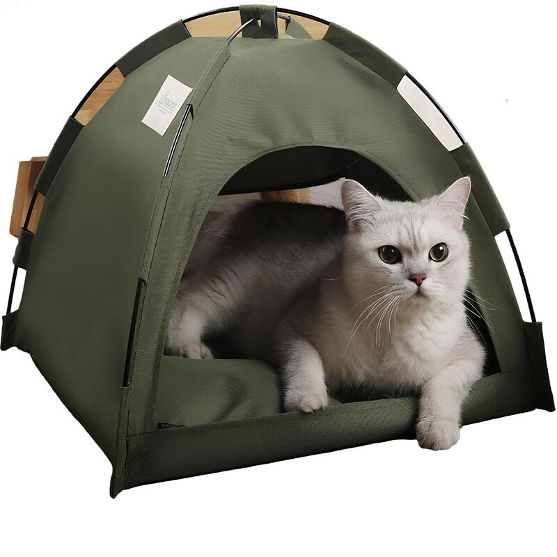 Das Zelt-Katzenbett kann auf die Reise, zum Camping oder einem Outdoor-Ausflug mitgenommen werden, kann aber auch ganz einfach im eigenen Wohnzimmer aufgestellt werden.