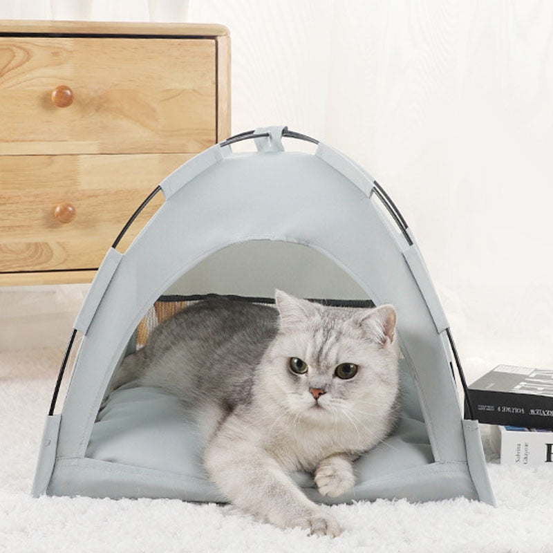 Das Zelt eignet sich gut für Katzen, Welpen und kleine Hunde. Es ist leicht, bequem, zusammenklappbar und aus atmungsaktivem Material genäht. Im Zelt befindet sich ein doppelseitiges weiches Kühlkissen aus Eisseide, das an heißen Tagen für zusätzliches Komfort sorgt. Dadurch bleibt die Luft im Zelt im Sommer erfrischend und wird nicht stickig.